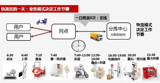 可能我們見(jiàn)到的快遞員更多的是,送貨上門(mén)或者在驛站分發(fā)快遞的那種類(lèi)型。但快遞員一個(gè)正常的流程基本上是上面那張圖所展示的。