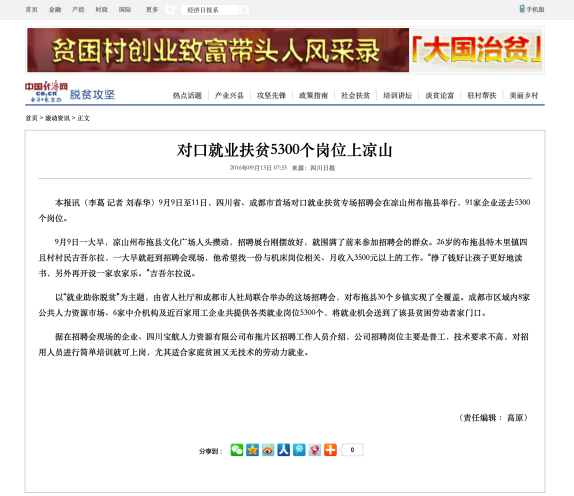 對口就業(yè)扶貧5300個崗位上涼山