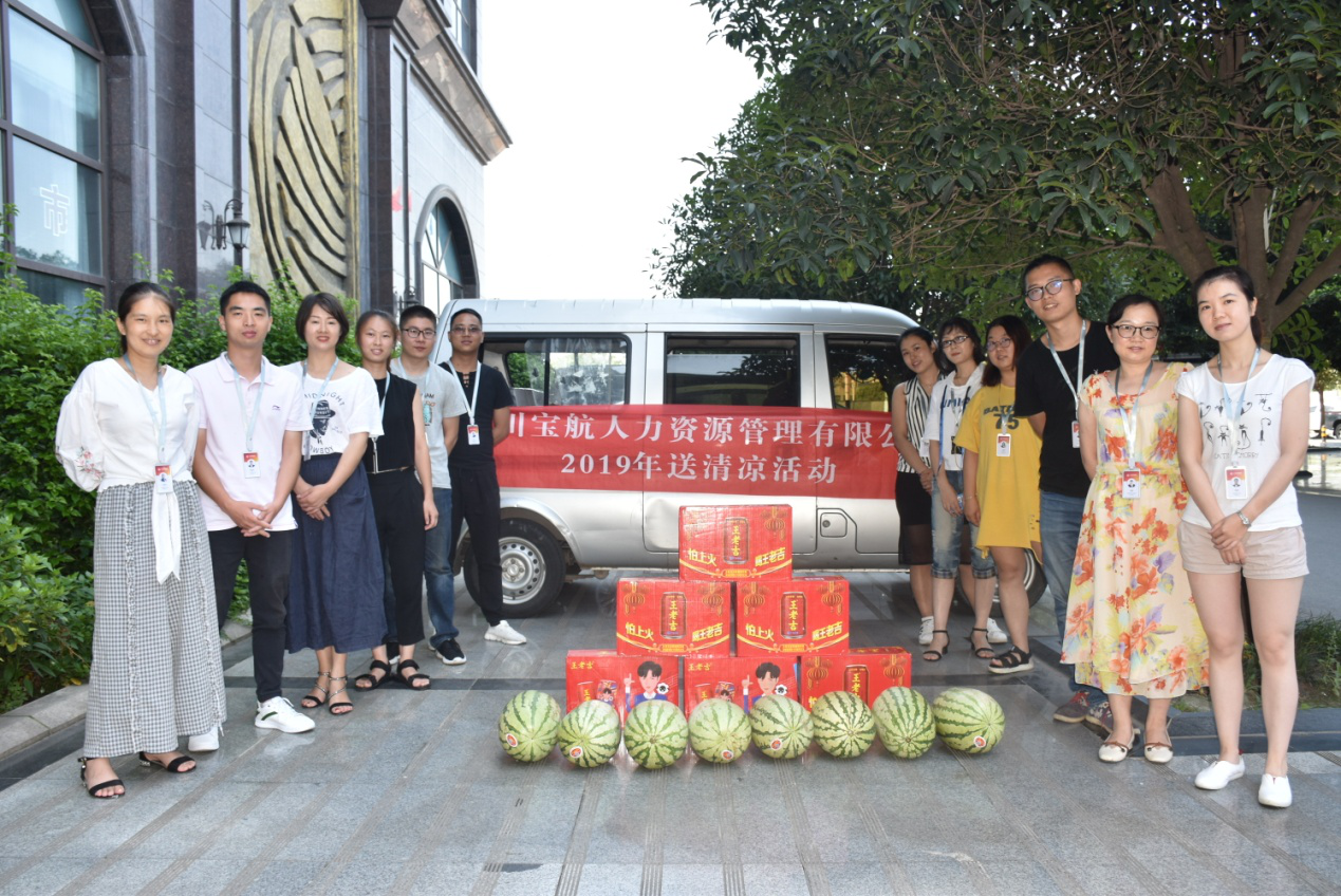 為做好公司夏季防暑降溫工作,關(guān)心關(guān)愛一線班組和職工,近日,四川寶航人力資源管理有限責(zé)任公司組織開展了2019年“高溫慰問送清涼,點(diǎn)滴關(guān)懷沁人心”活動(dòng)。